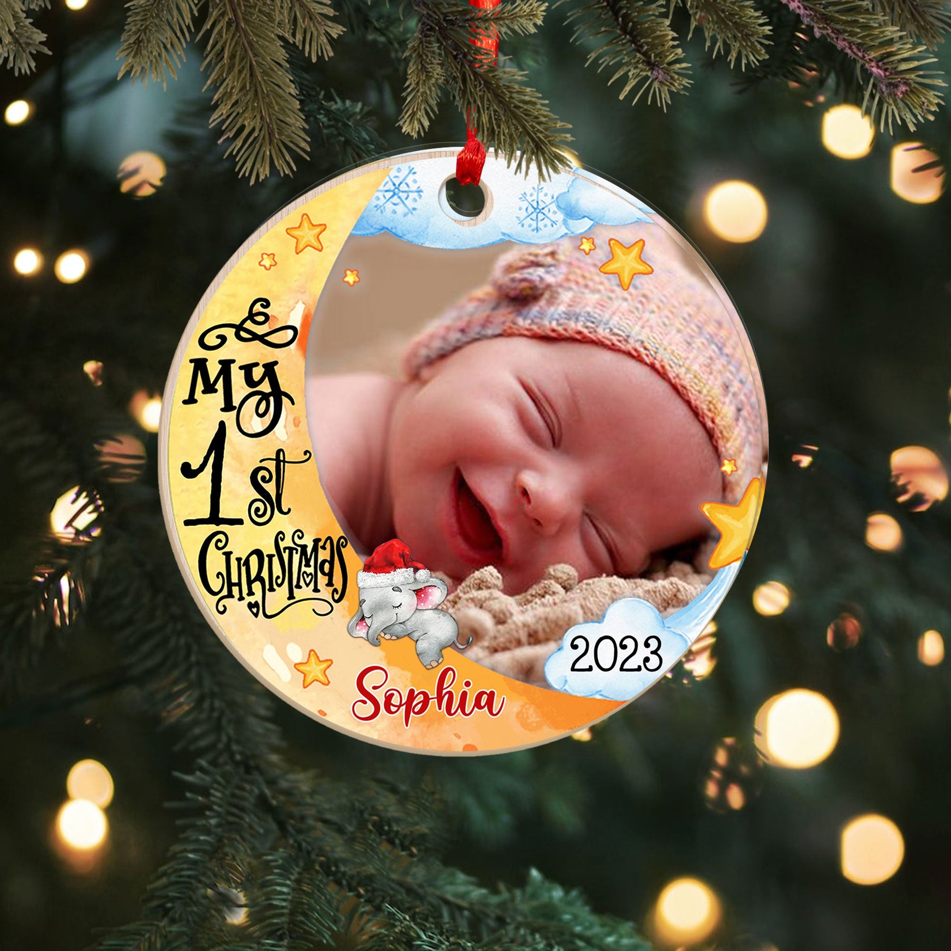 My First Christmas - Personalized Custom Shaped Wooden Ornament - Gift For Baby