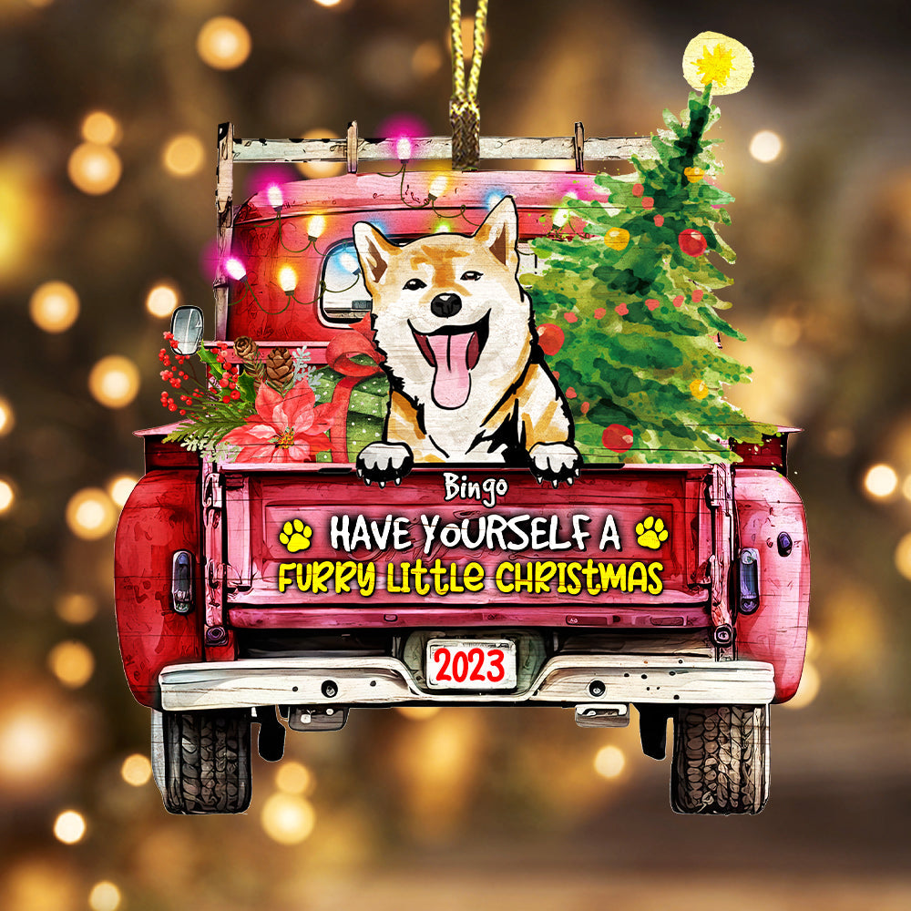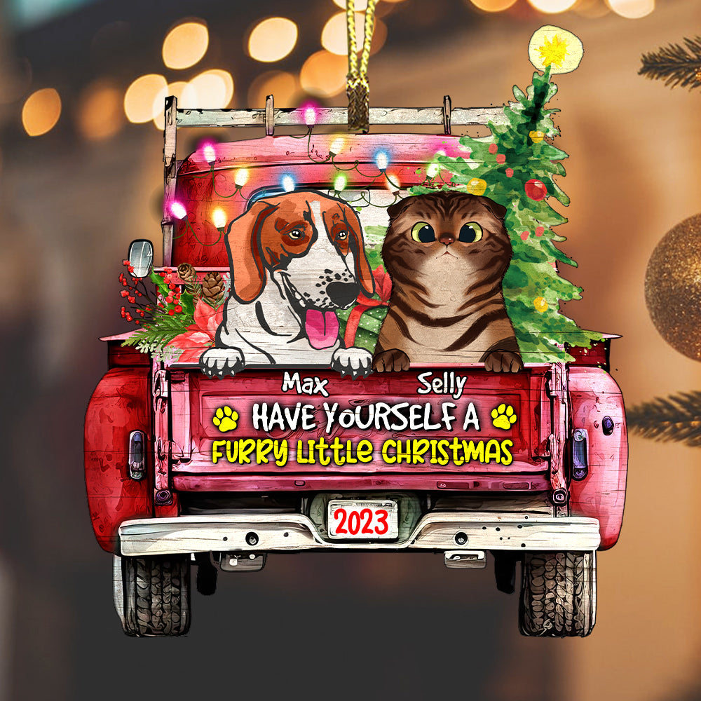 Personalized Furry Little Christmas - Personalized Custom Shaped Wooden Ornament - Gift For Pet Lover