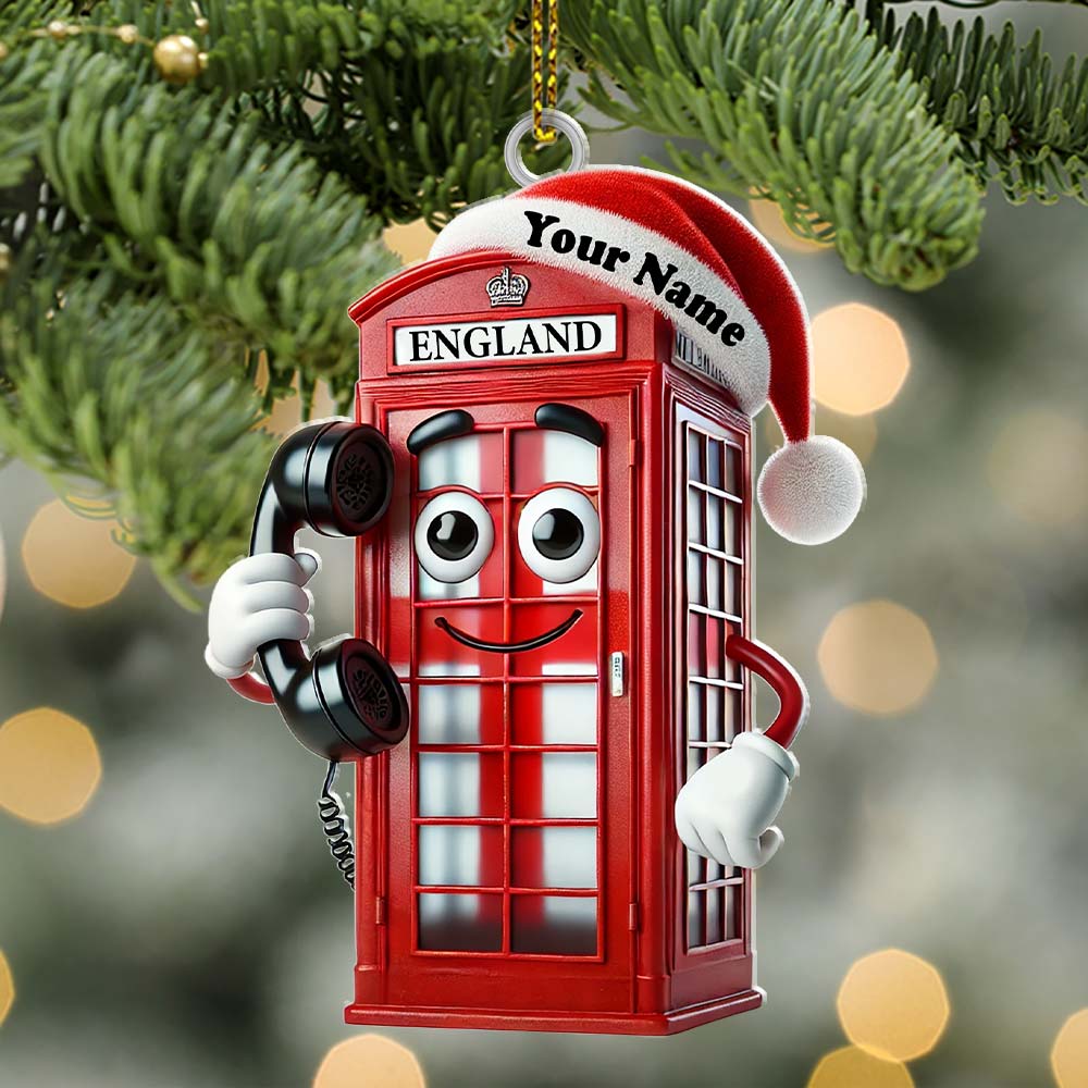 England Red Telephone Box Christmas Ornament, Personalized Ornament